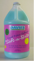 Davies “Soft-N-Brite” is used for commercial laundries and home use. Treated towels, diapers, and all knit goods feel soft, fluffy. Sheets, linens, and shirts are easier to iron; durable press fabrics have reduced wrinkling. Static cling and lint pick-up are easily prevented, with treated laundry being soft, pliable, and resilient. Noticeable results include faster and more complete extraction and drying, easier handling at shakeout and pressings, and more smooth travel through procession equipment. Fabrics treated with “Soft-N-Brite” show no yellowing, even after repeated laundry cycles.